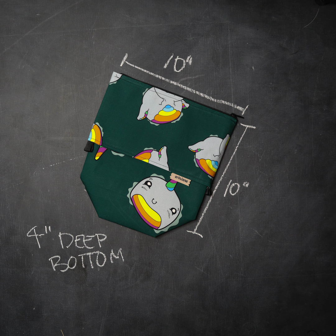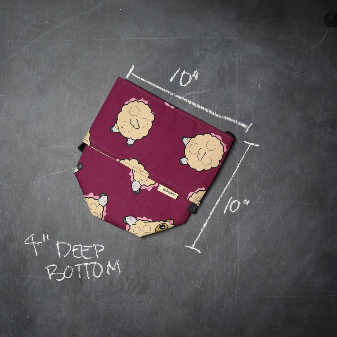 I love this bag. No seams for yarn to get caught. Keeps yarn from tangling