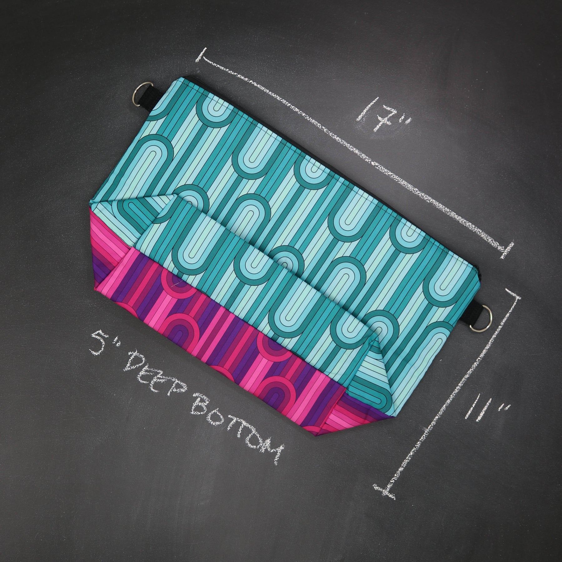 Measuring 17" wide, 10" tall, and 5" deep, it easily holds up to 1100g of yarn or everything you need for a day on the go, from your wallet and water bottle to snacks, notebooks, or a Kindle. The fully zippered top keeps everything secure, while the light-colored interior helps you find what you’re looking for without digging.