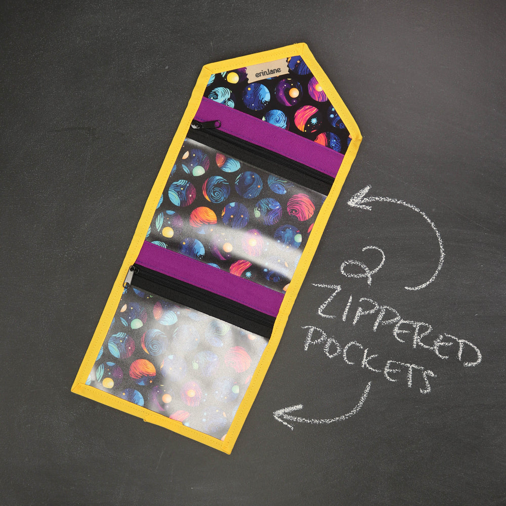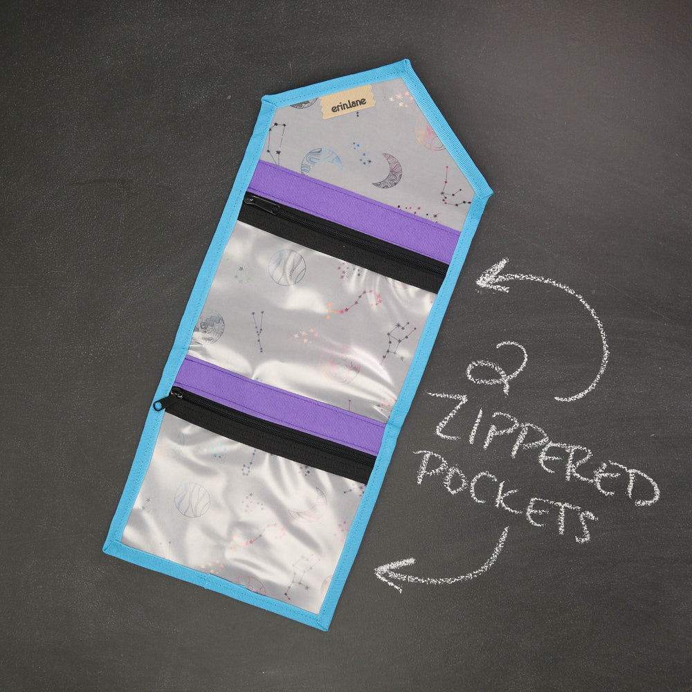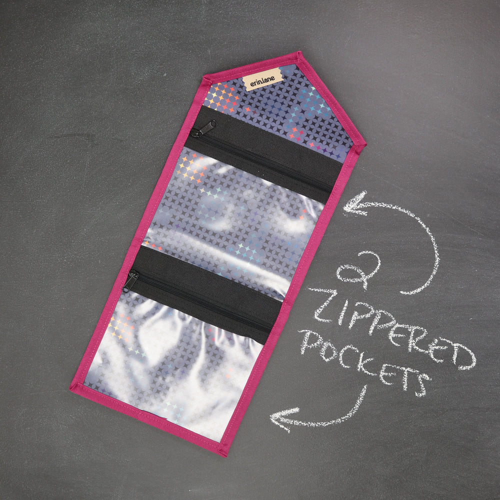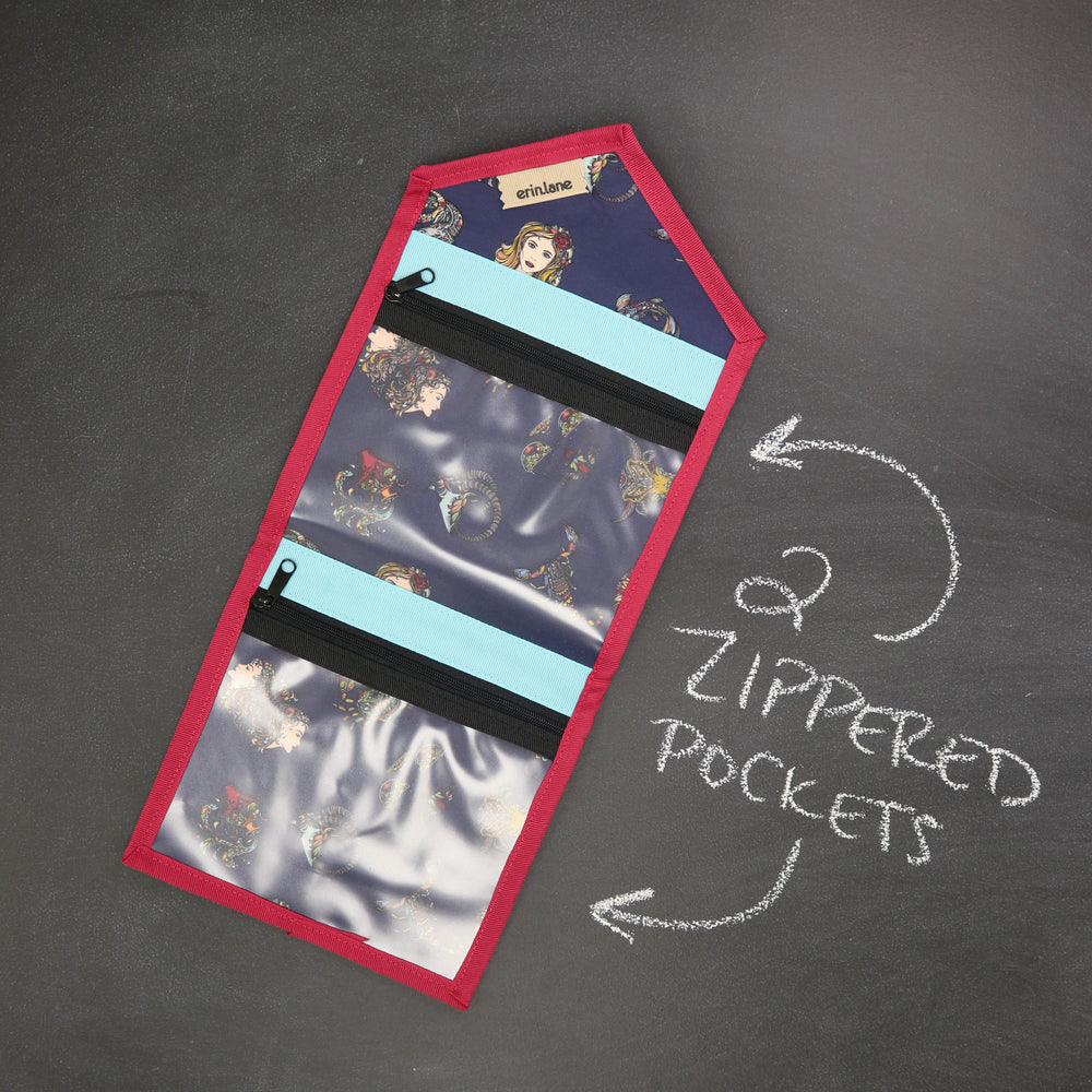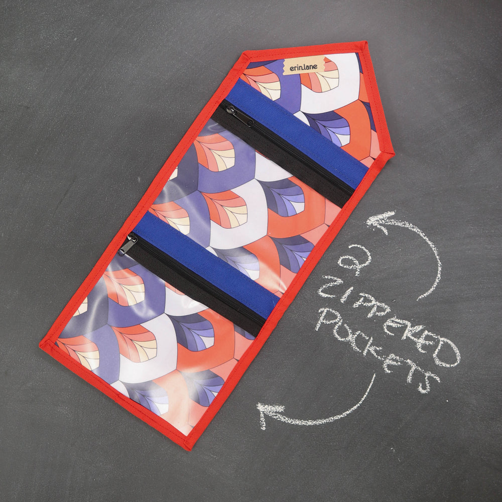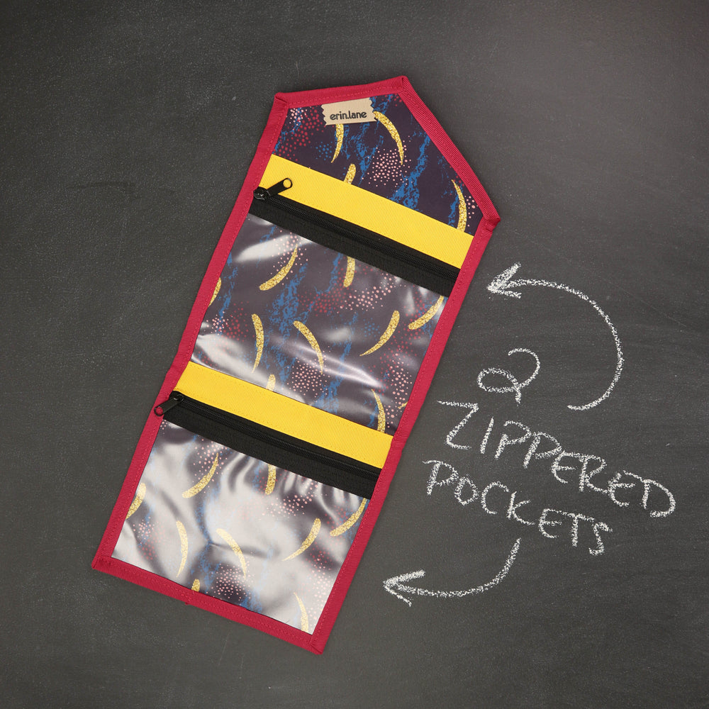 Tame the tools you are always searching for in the bottom of your bag. The KNITPack Notions has two vinyl zippered pockets for all your notions and stitch markers. No need to worry if your notions are bulky, the adjustable magnetic closure makes sure to keep your notions safe even if it's super full.