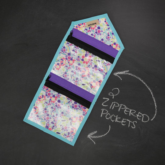 Two clear vinyl pockets: Store crafting tools, sticky notes, earrings, meds, or oils — all visible and secure