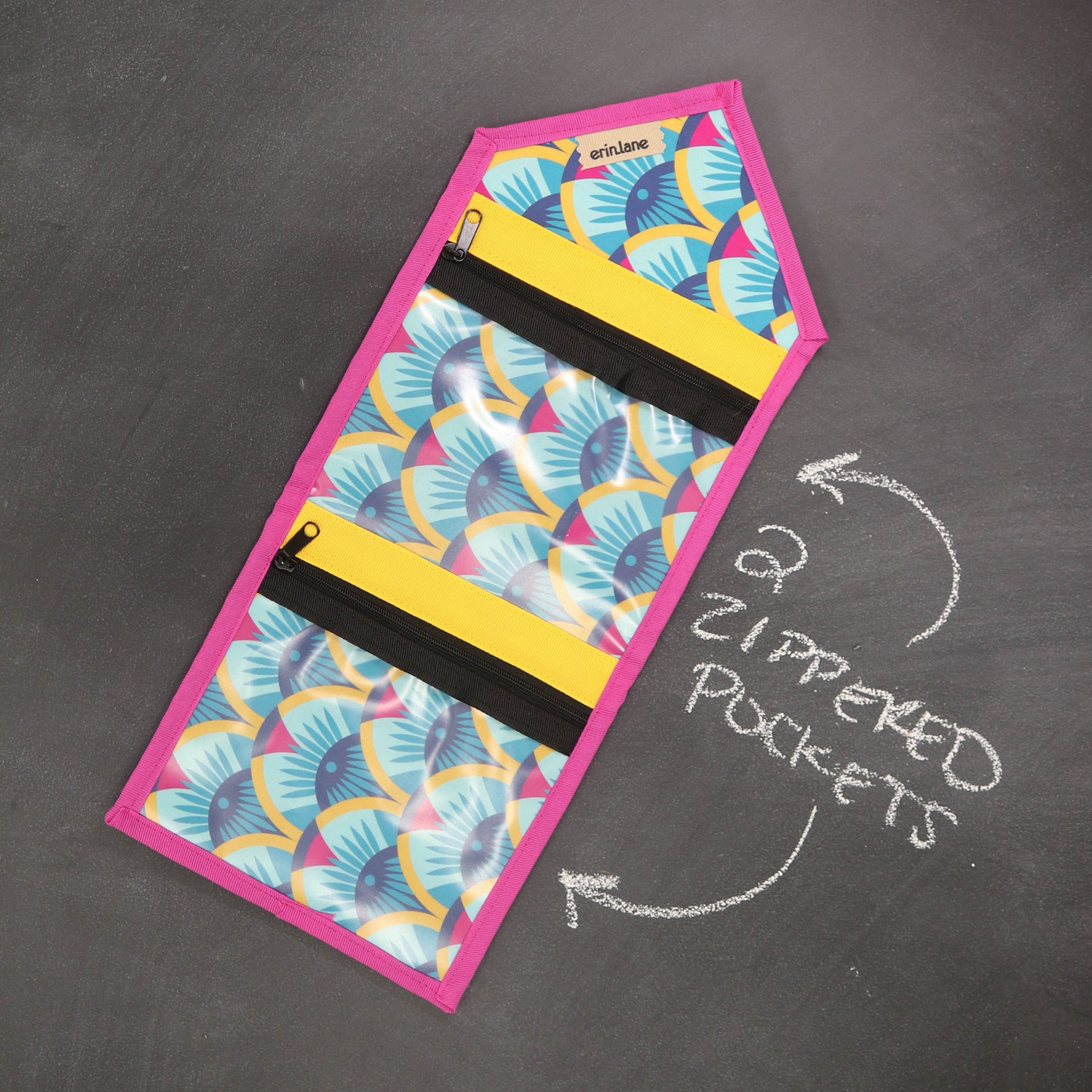 Two clear vinyl pockets: Store crafting tools, sticky notes, earrings, meds, or oils — all visible and secure