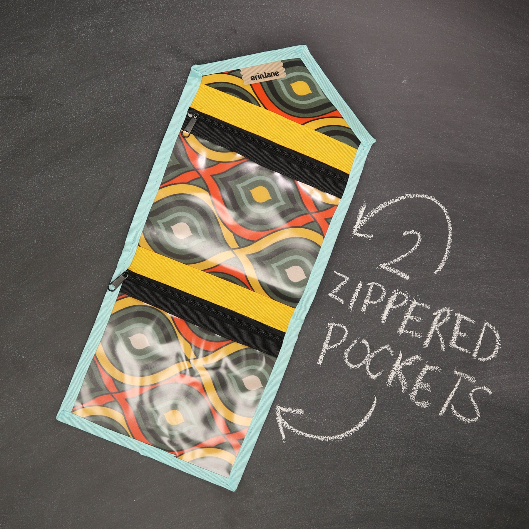 Two clear vinyl pockets: Store crafting tools, sticky notes, earrings, meds, or oils — all visible and secure