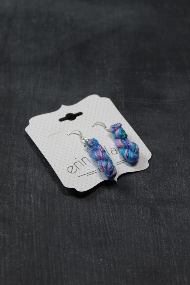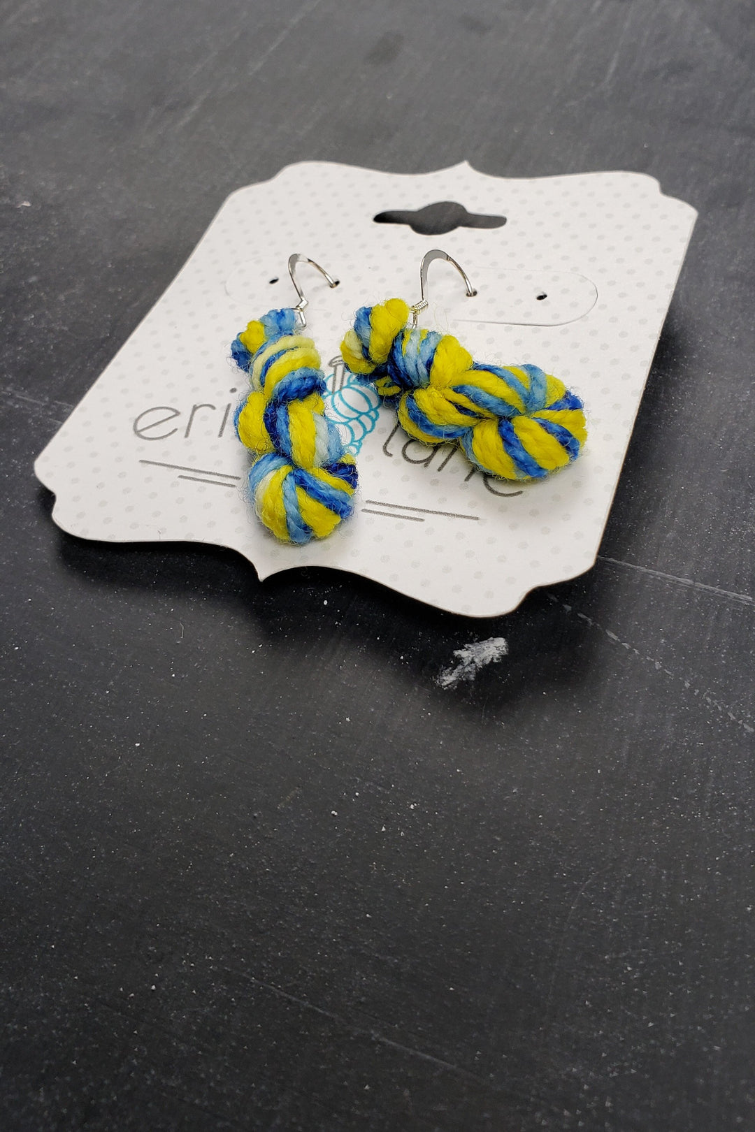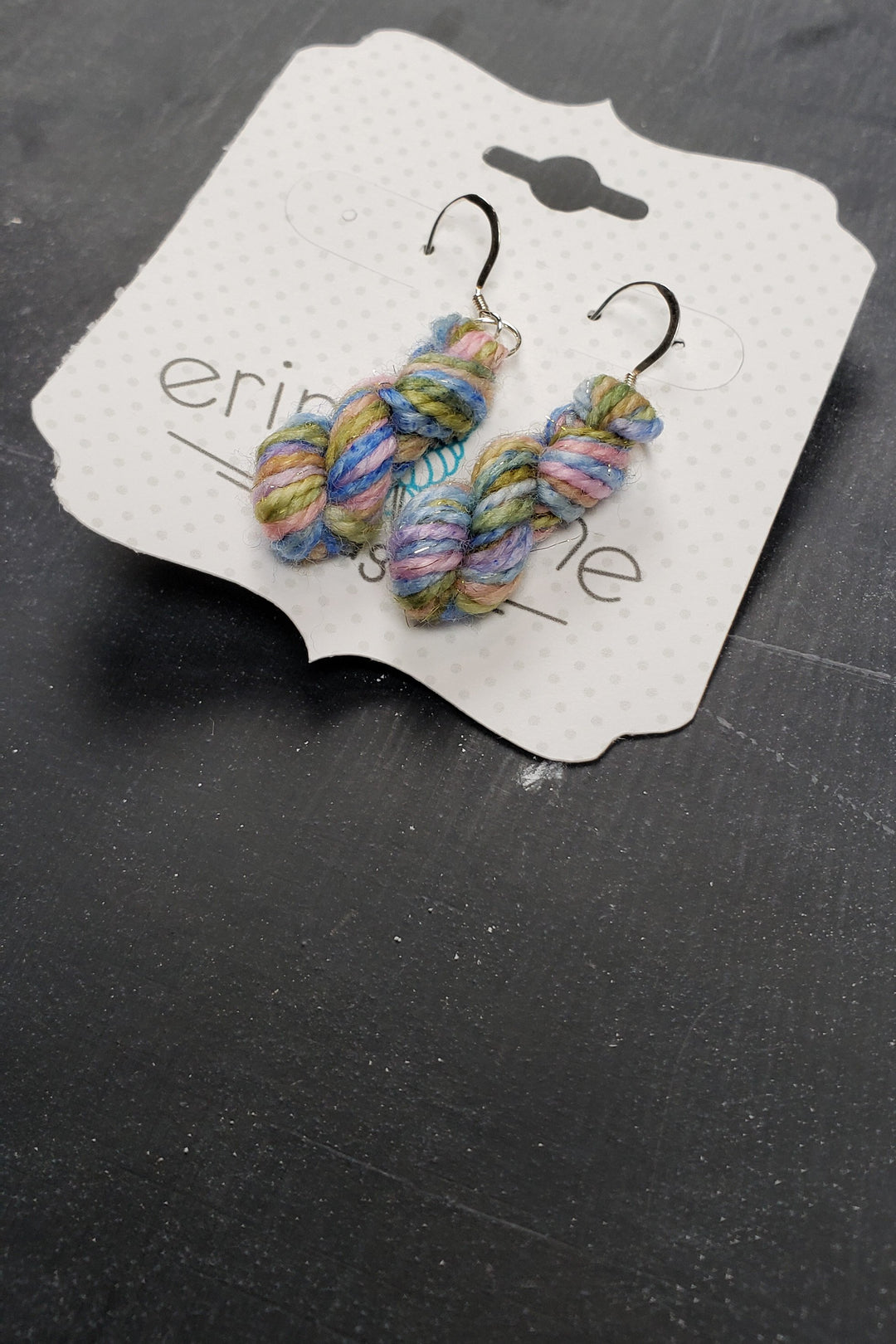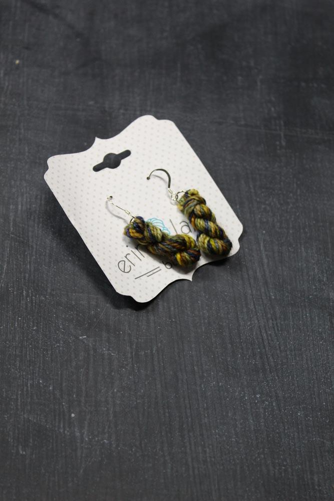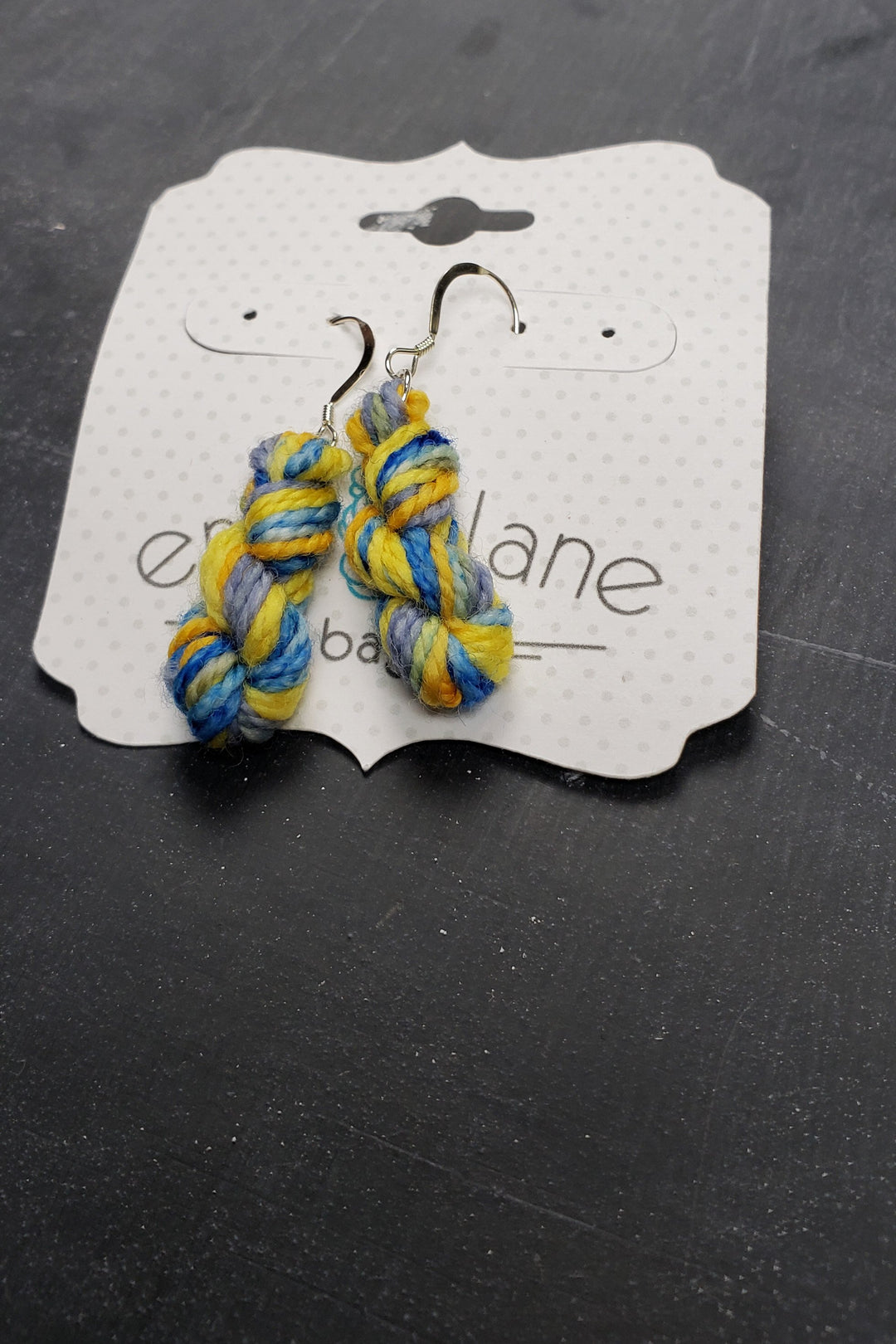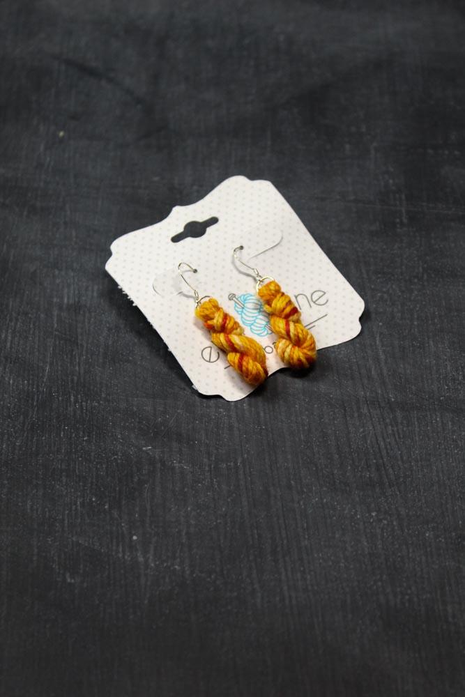 Hand dyed 100% Merino wool with nickel free sterling ear-wires. Each pair is unique.