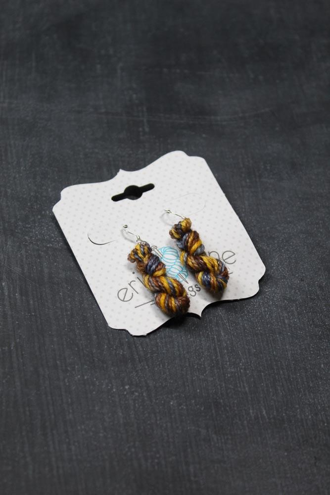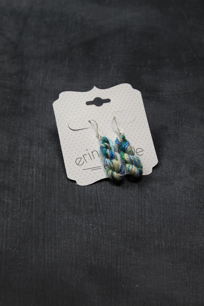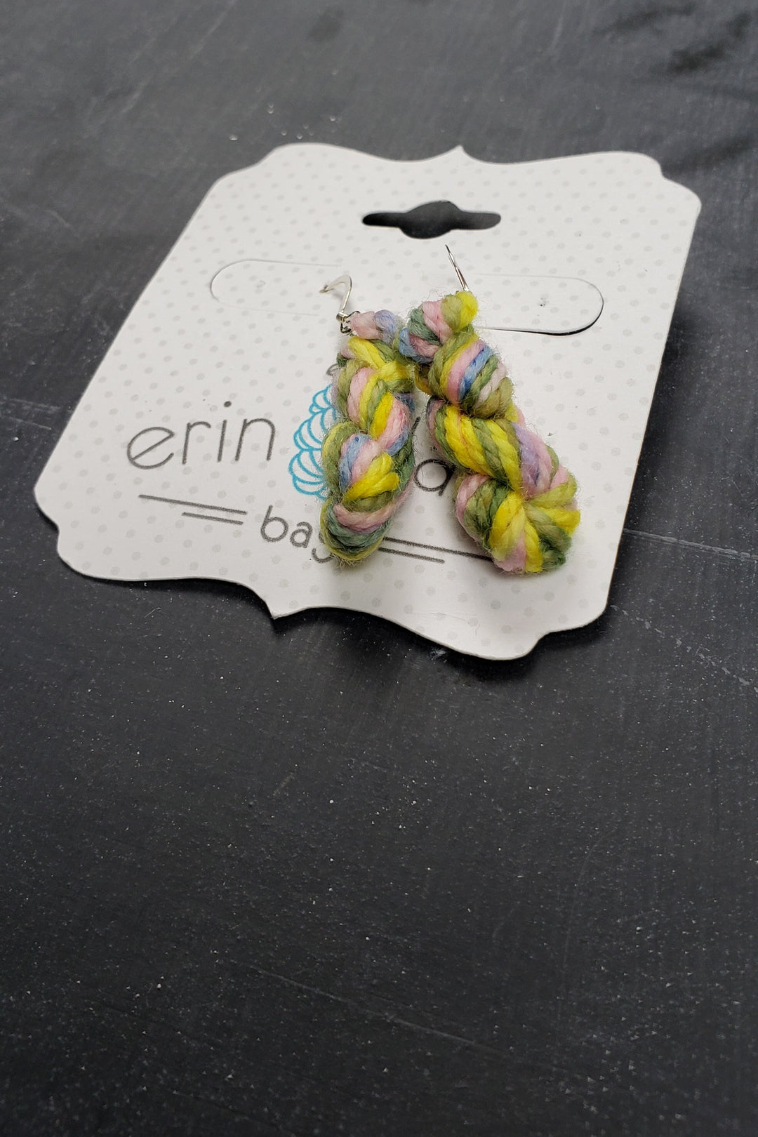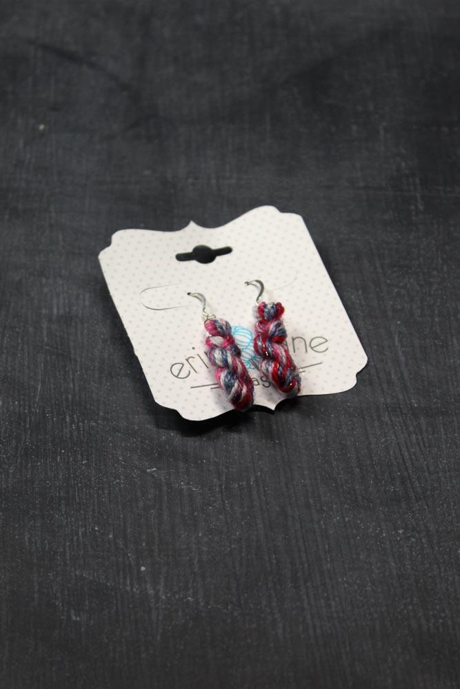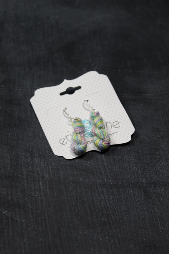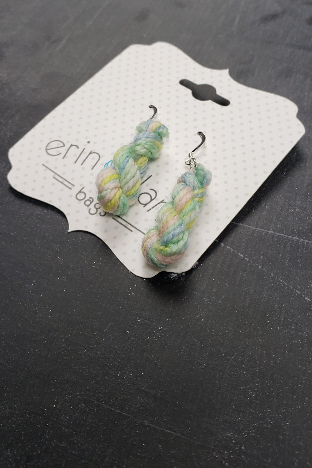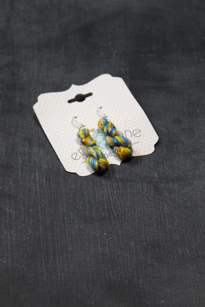 Hand dyed 100% Merino wool with nickel free sterling ear-wires. Each pair is unique.