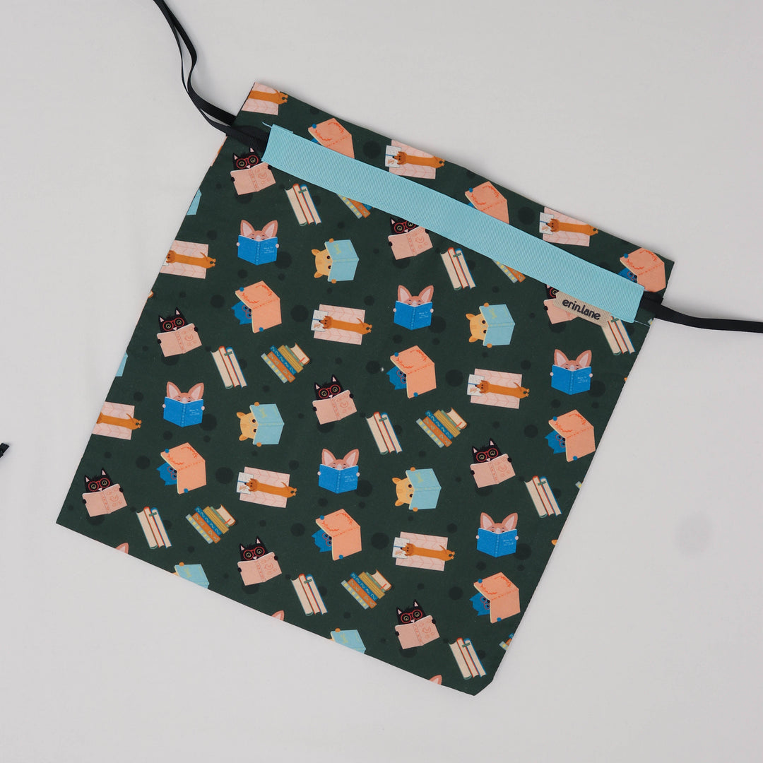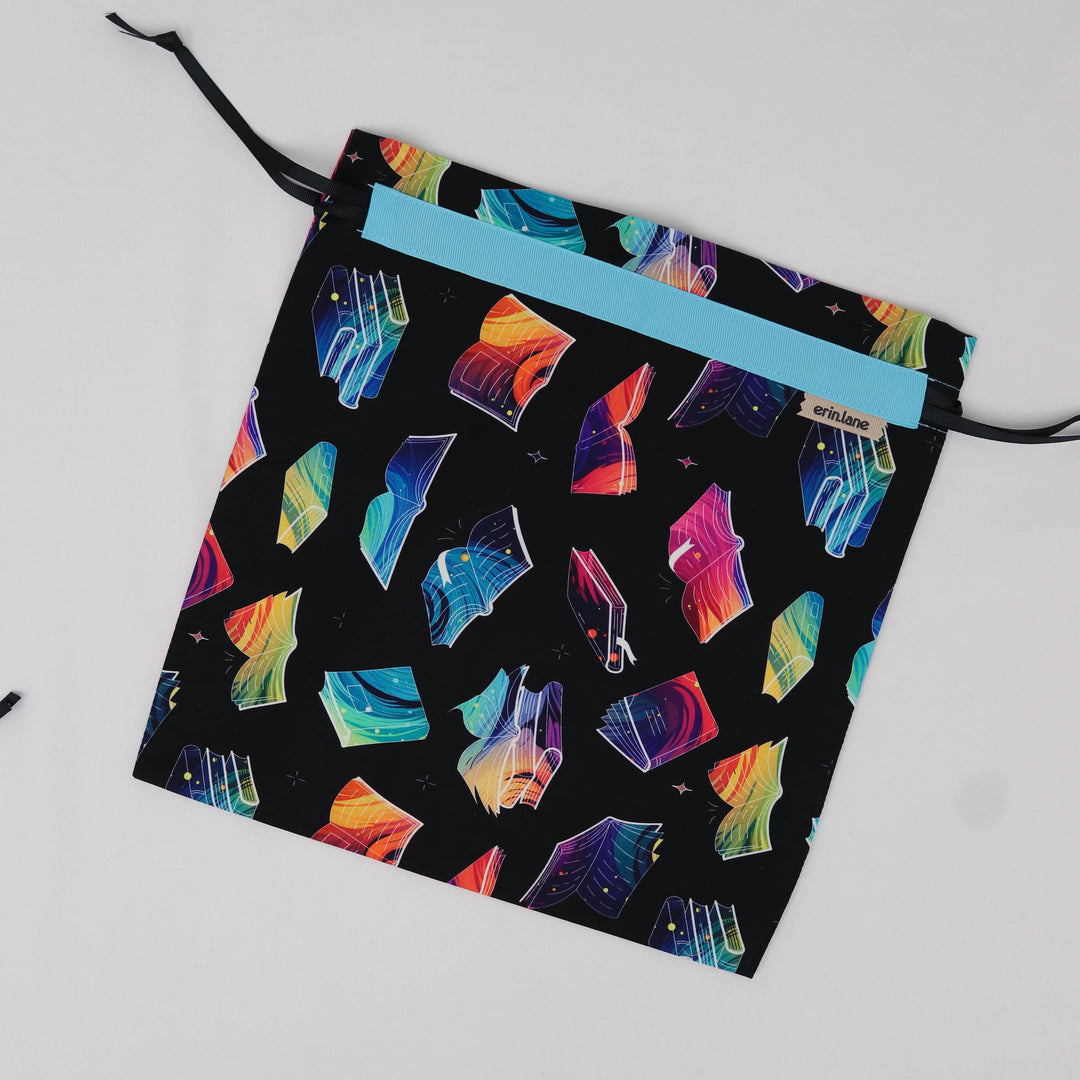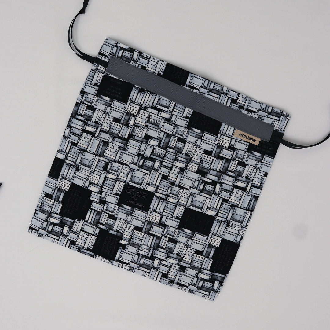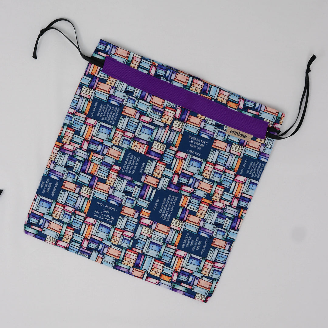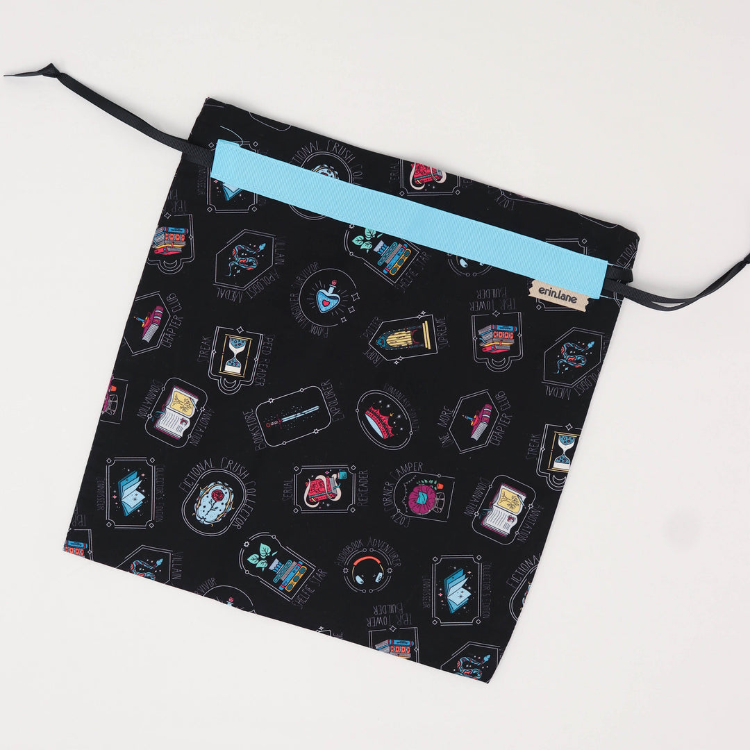 Our very first project bag. Measuring 12 X 12 inches, this flat folded bag is super versatile. Perfect for smaller projects like, hats, mittens, socks, scarves, cowls, and baby sweaters. This bag is great for a one or two skein project.