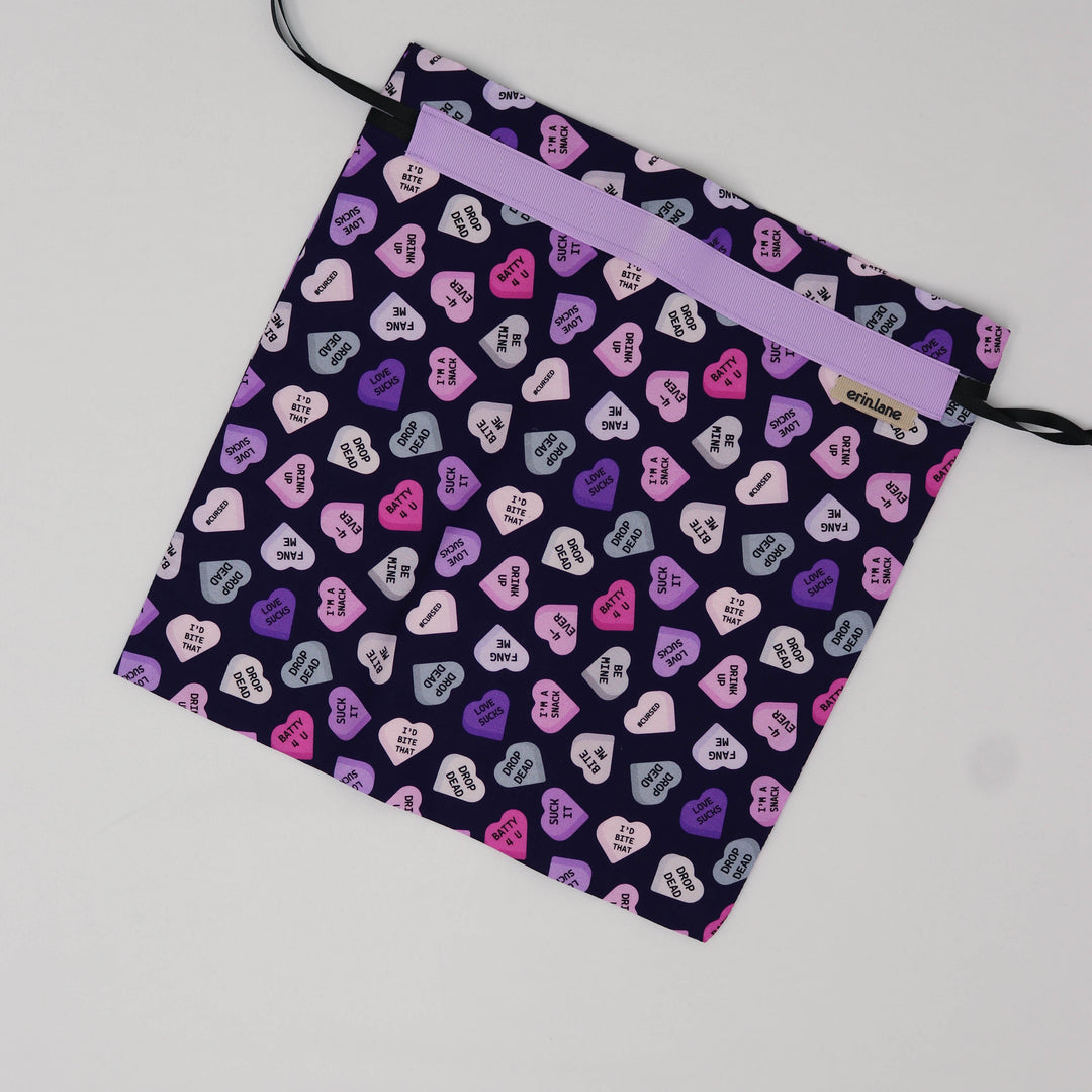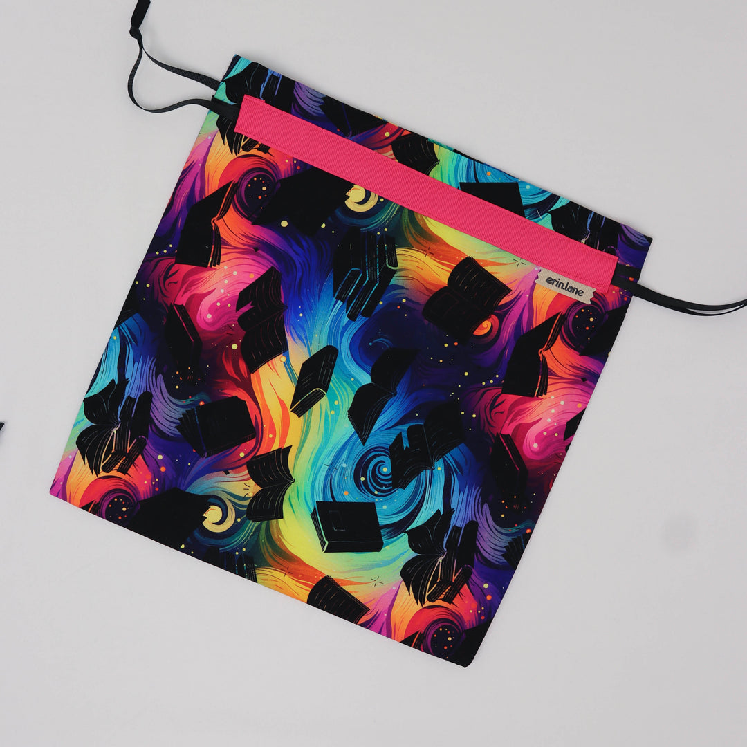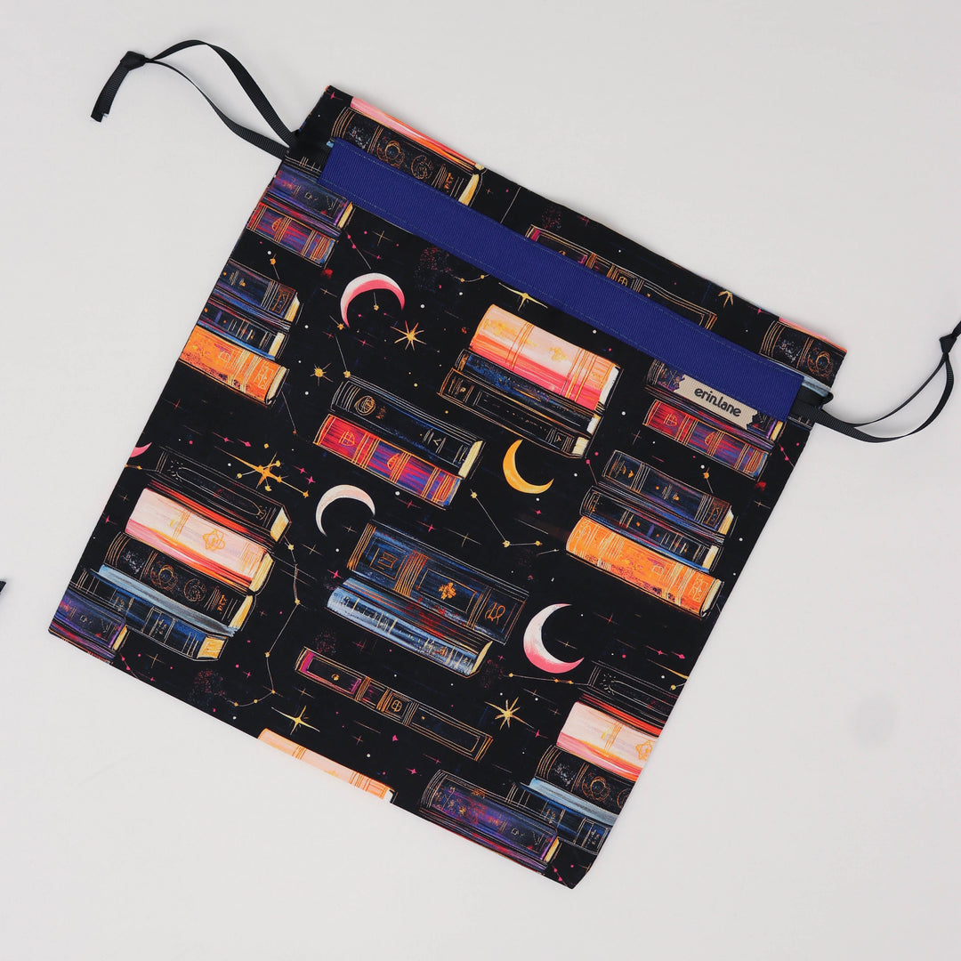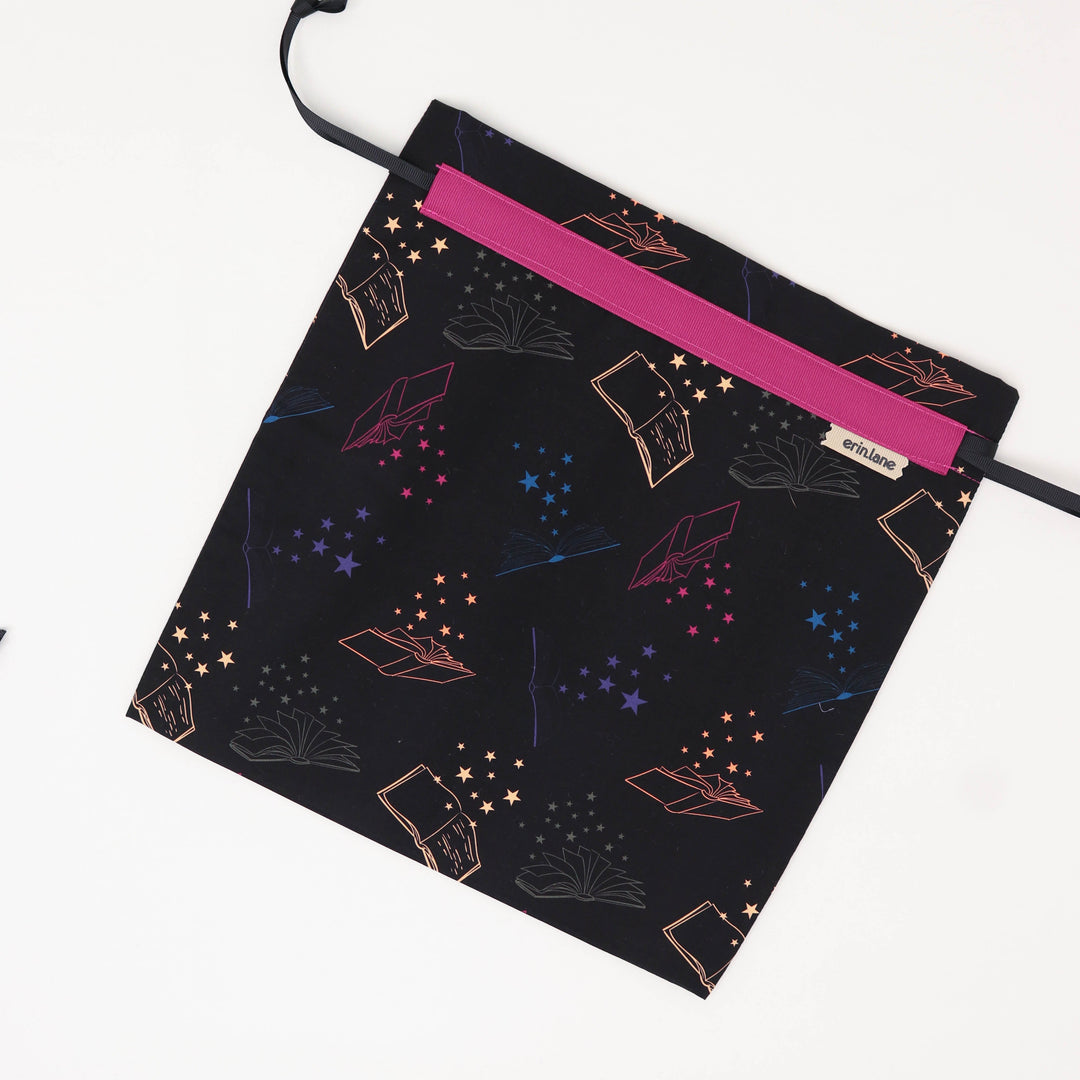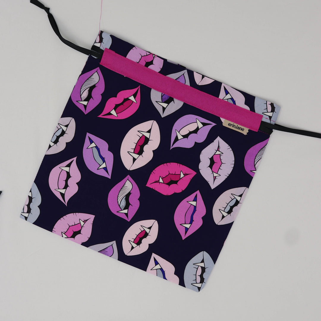 Our very first project bag. Measuring 12 X 12 inches, this flat folded bag is super versatile. Perfect for smaller projects like, hats, mittens, socks, scarves, cowls, and baby sweaters. This bag is great for a one or two skein project.