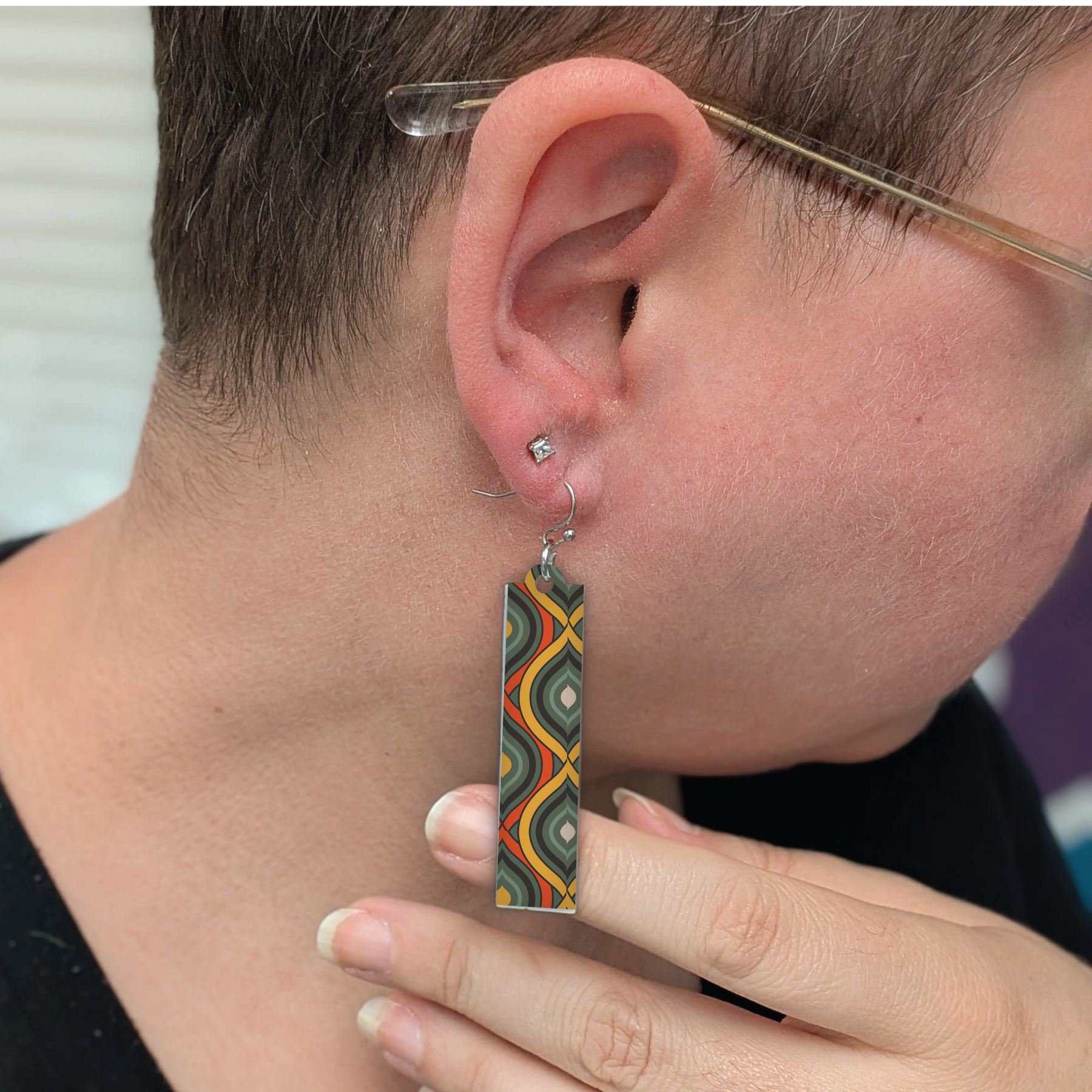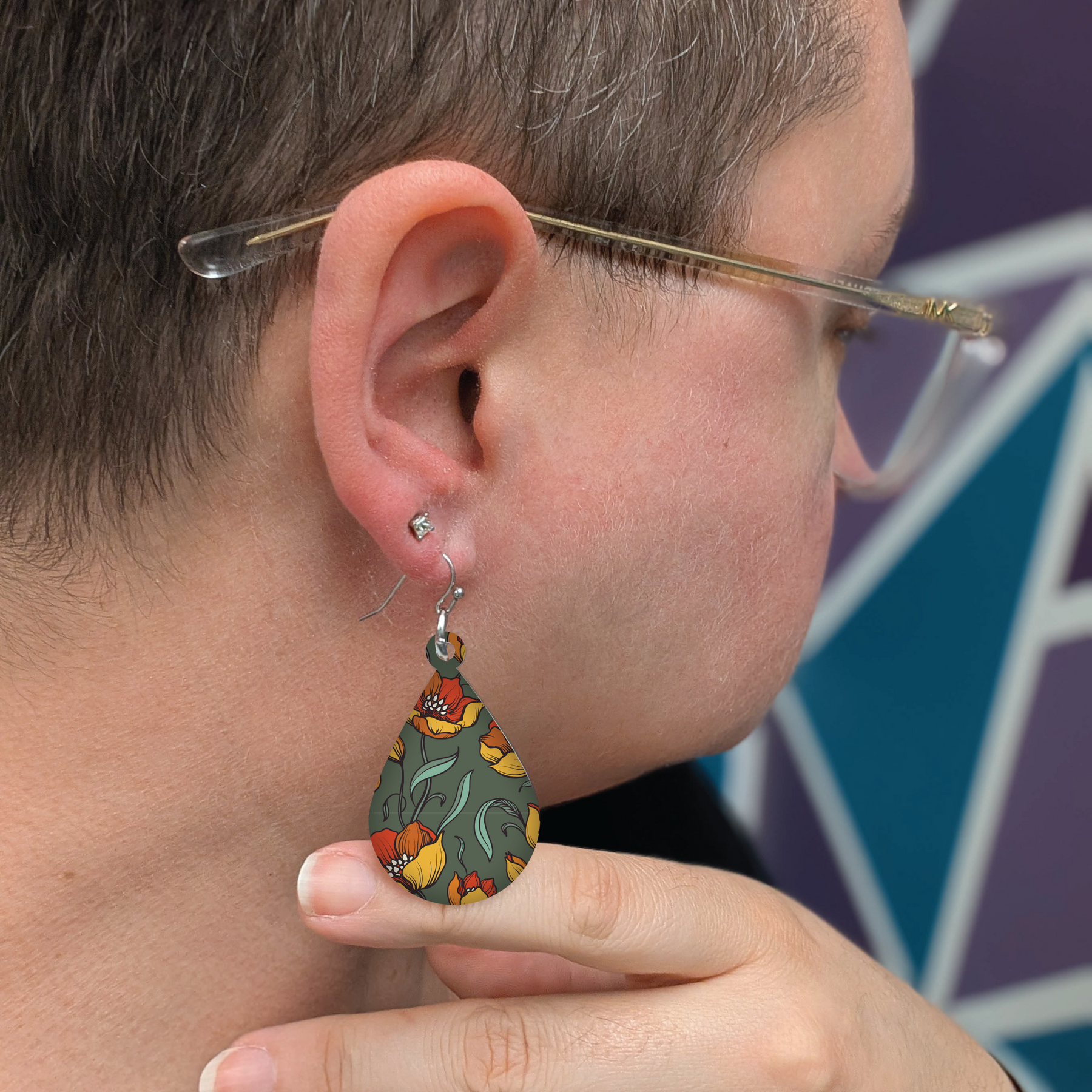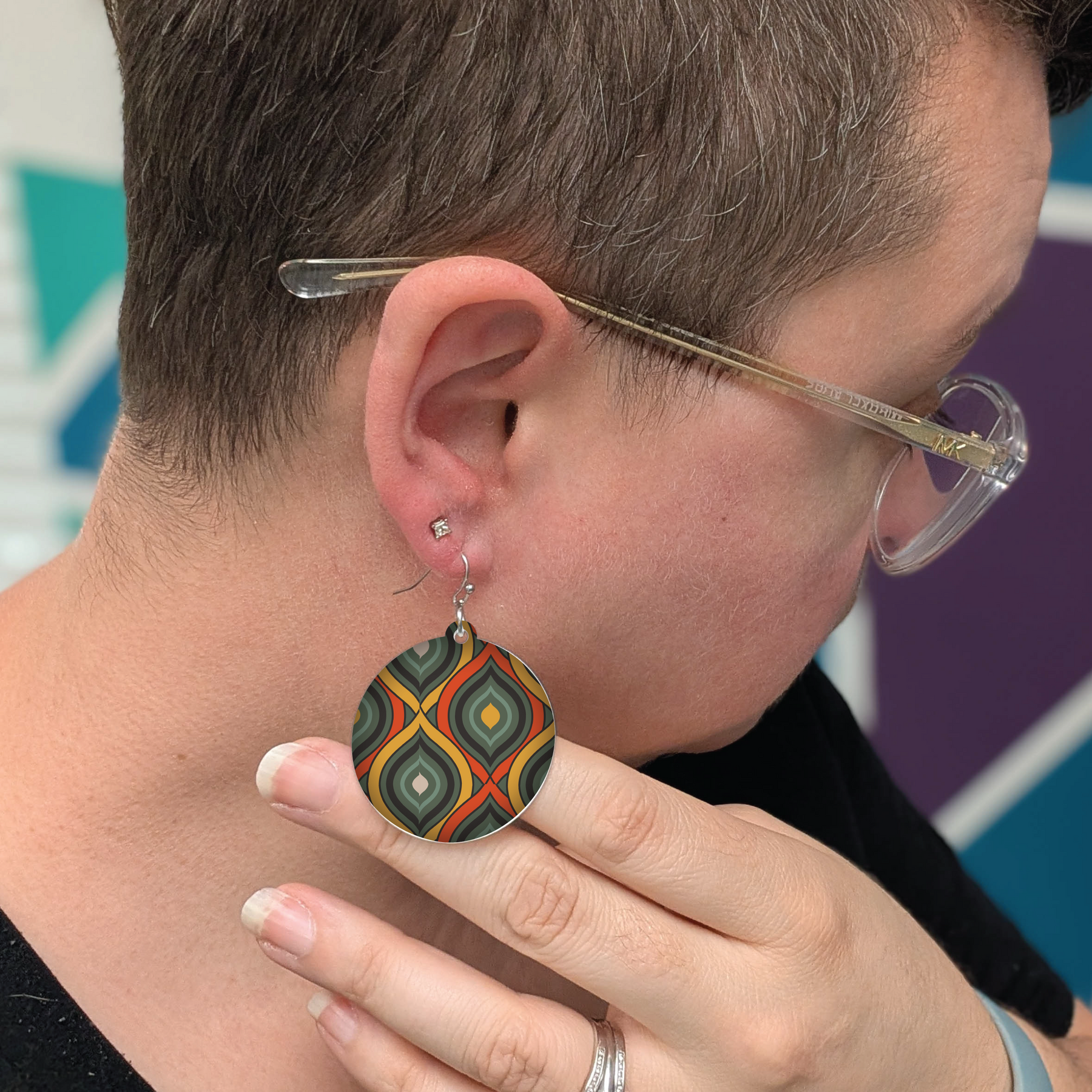 Earrings: All hardware is surgical steel to reduce irritation risk. Image sublimated onto 3mm cast acrylic.