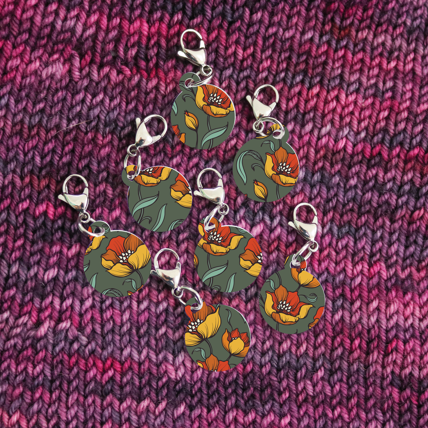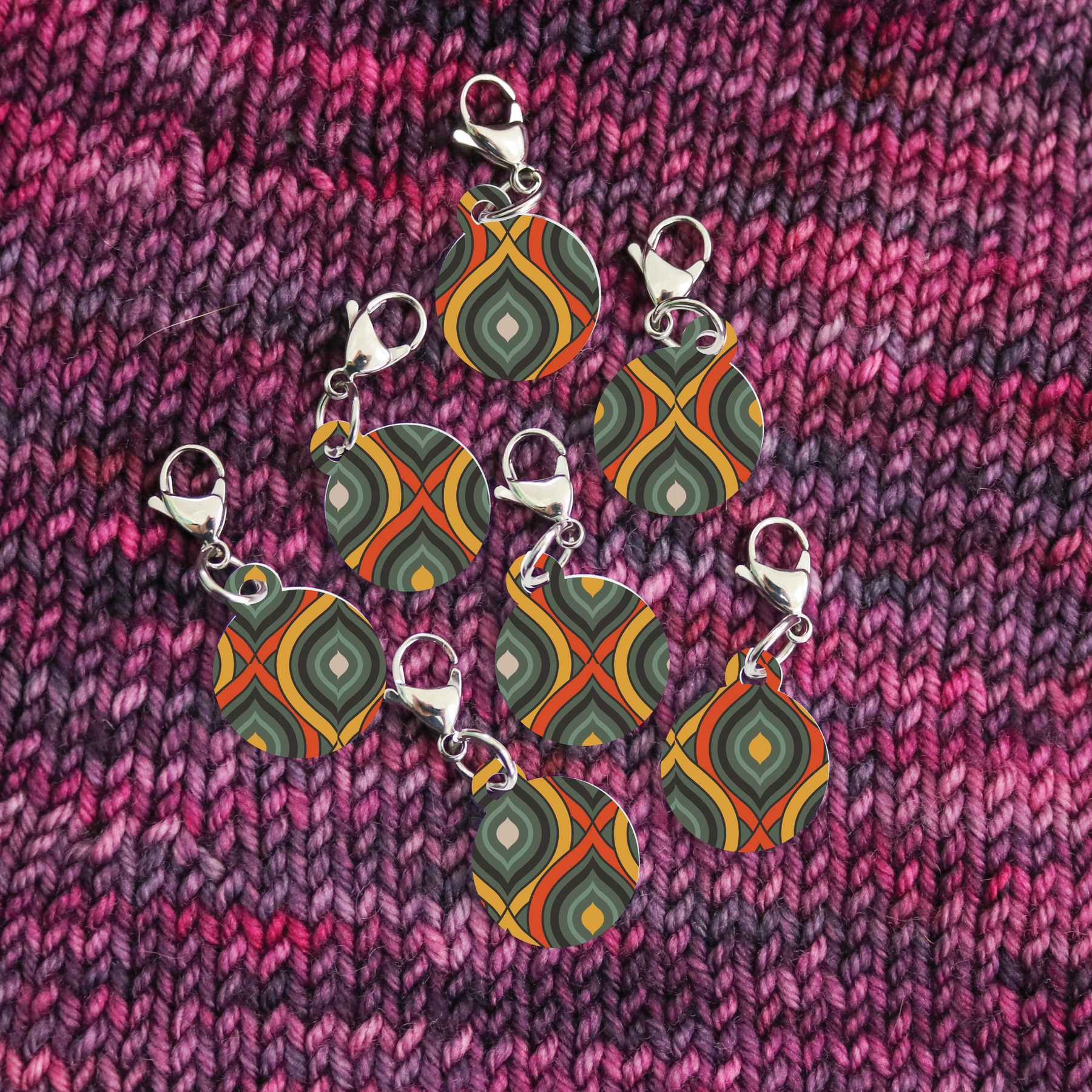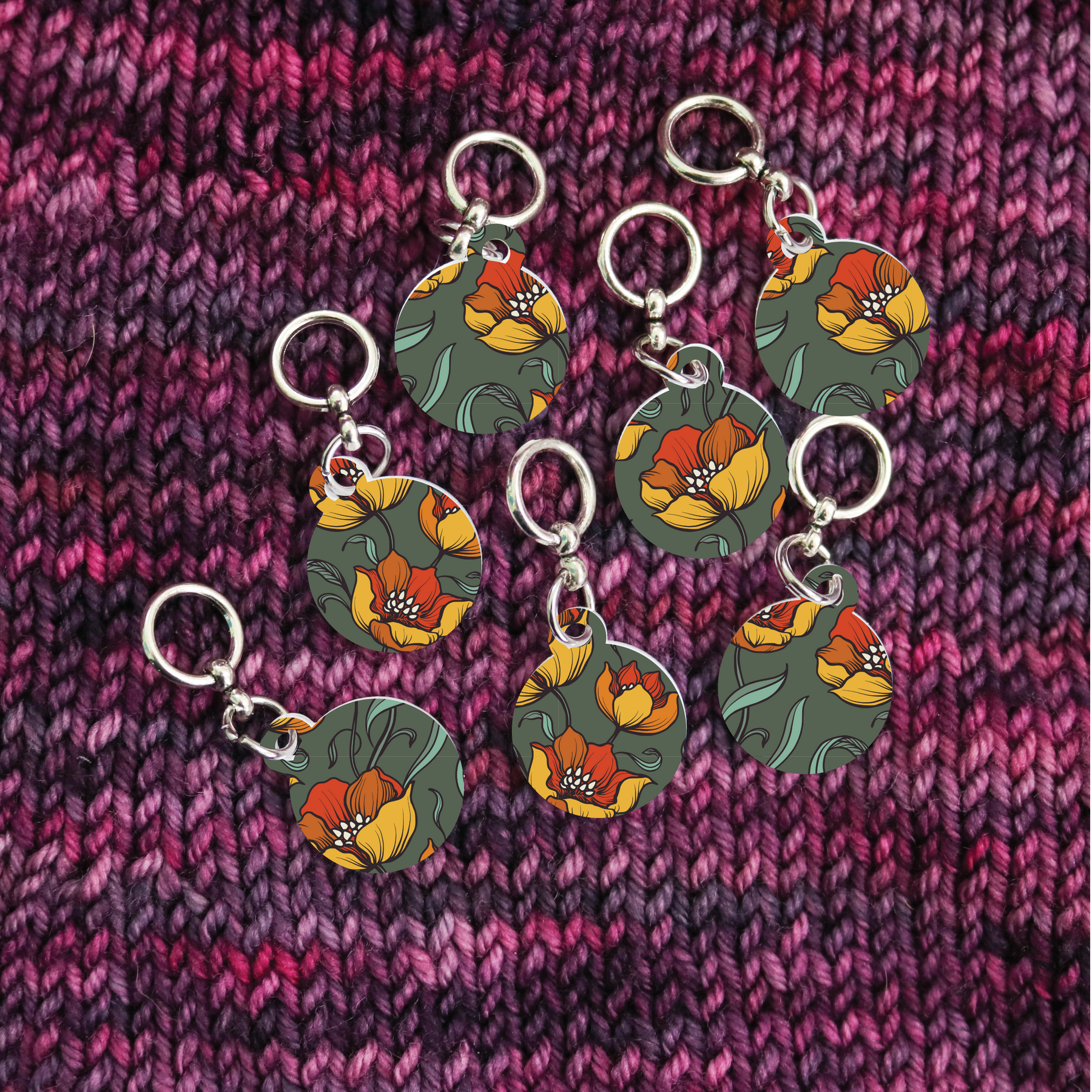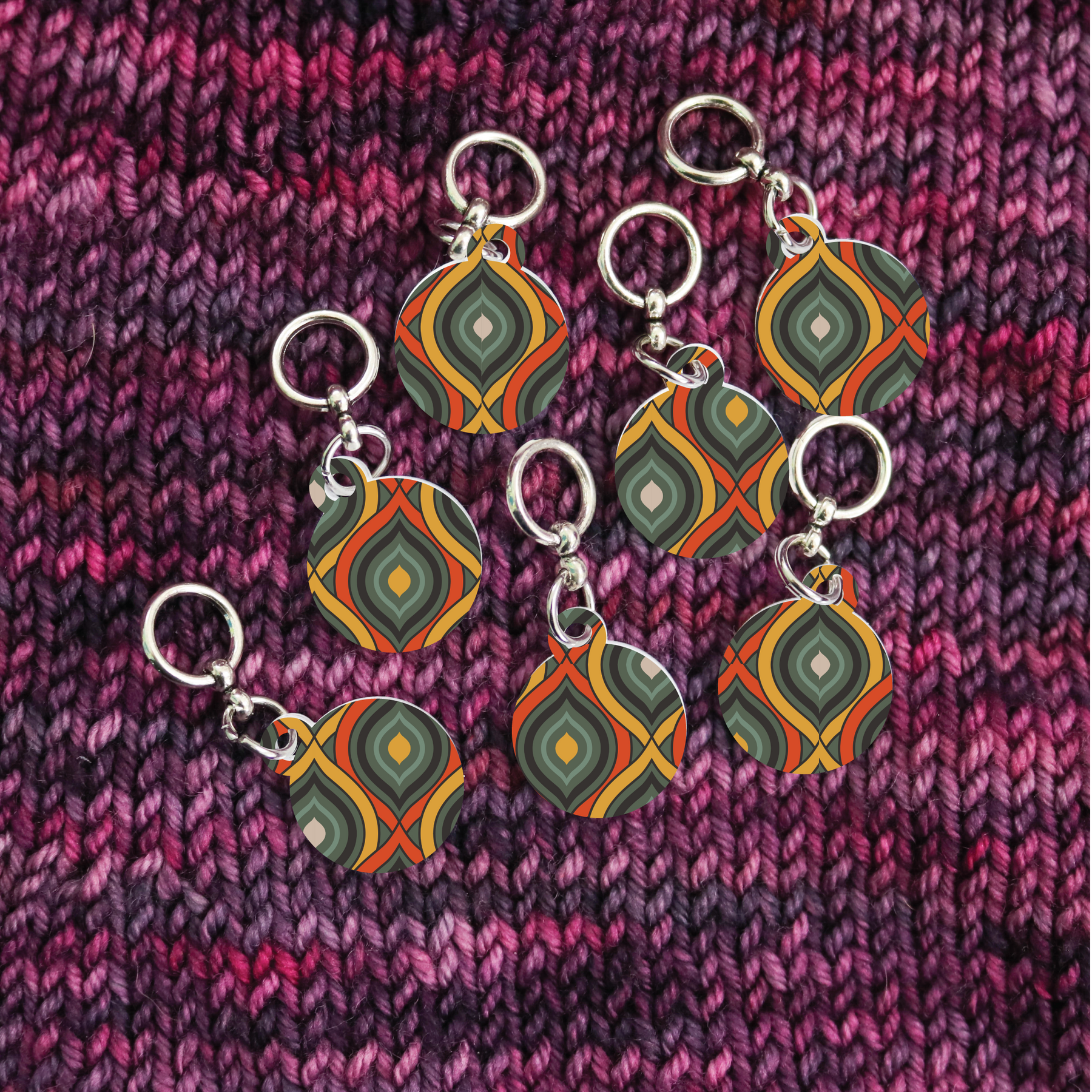 Stitch Markers: Set of 7 made from 3mm cast acrylic. Hardware is stainless steel.