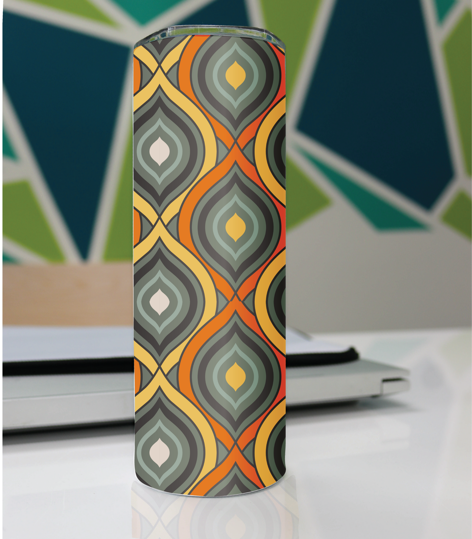 Tumbler: Stainless steel double wall insulated with acrylic lid and straw.