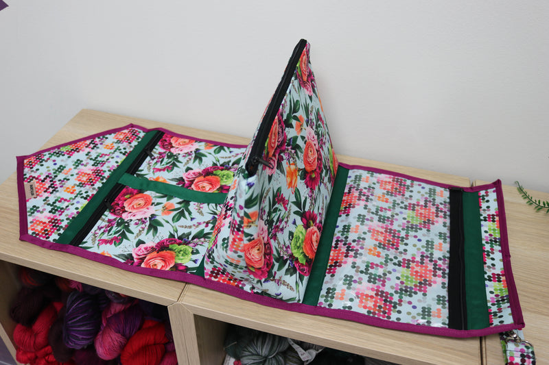 - Fold-Up Organizer: Includes spots for your pattern, plus two zippered pockets for notions, needles, and hooks.
