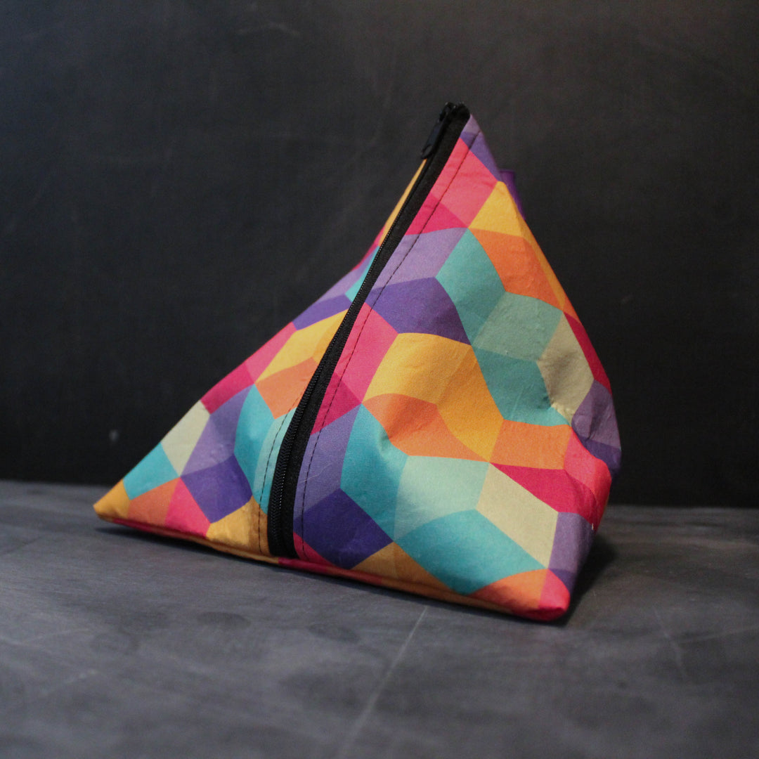 This pyramid style zippered bag is perfect for holding those larger cakes of yarn while you are working. In case you have a curious critter in your life, these zippered bags are a great temporary yarn bowl that keeps curious noses out. The #3 nylon coil zipper reduces the risk of catching the yarn, and the oversized lobster claw on the top makes it easy to attach to a key fob or other bag for extra space when you need it.