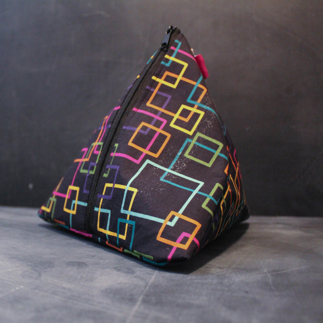 This pyramid style zippered bag is perfect for holding those larger cakes of yarn while you are working. In case you have a curious critter in your life, these zippered bags are a great temporary yarn bowl that keeps curious noses out. The #3 nylon coil zipper reduces the risk of catching the yarn, and the oversized lobster claw on the top makes it easy to attach to a key fob or other bag for extra space when you need it.