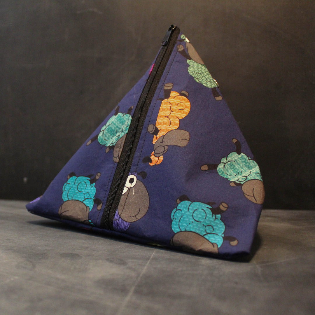 This pyramid style zippered bag is perfect for holding those larger cakes of yarn while you are working. In case you have a curious critter in your life, these zippered bags are a great temporary yarn bowl that keeps curious noses out. The #3 nylon coil zipper reduces the risk of catching the yarn, and the oversized lobster claw on the top makes it easy to attach to a key fob or other bag for extra space when you need it.