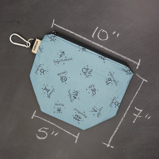 This larger version of our original dice bag is perfect for small knitting and crochet projects, single skeins, or organizing essentials on the go. It features a sturdy zippered closure to keep everything in place, plus a carabiner on the side so you can clip it to your belt loop, backpack, or larger tote. Whether you’re heading to game night, stitch night, or just trying to keep your cables tangle-free, this bag was made to go with you.