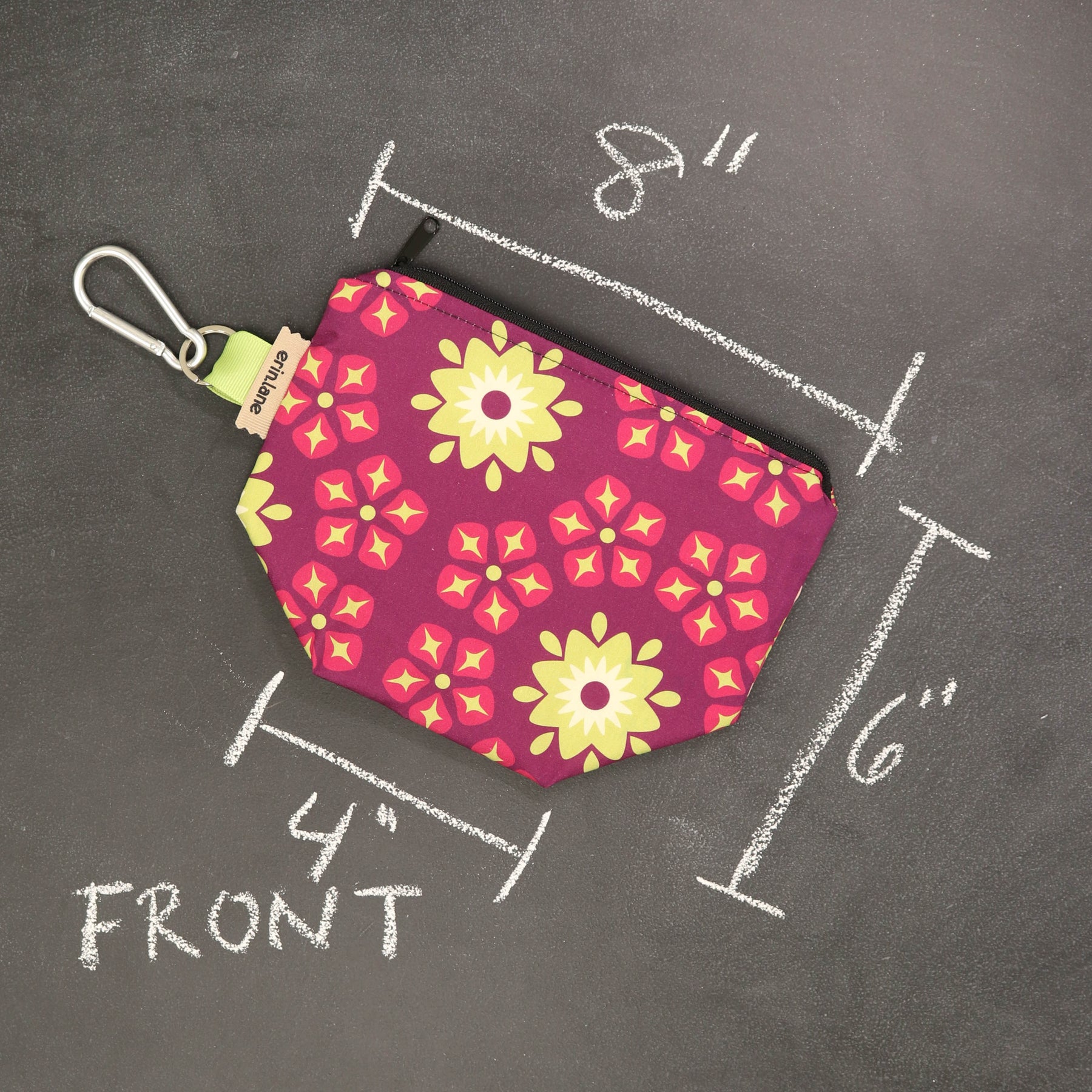 Sized at 8" x 6" x 4", it’s perfect for holding gaming dice, yarn notions, charging cords and blocks, travel toiletries, and any other small items that tend to disappear when you need them most. The #3 nylon coil zipper glides smoothly and won’t snag yarn, while a sturdy carabiner clip lets you hook it onto your backpack, project bag, or suitcase in seconds.