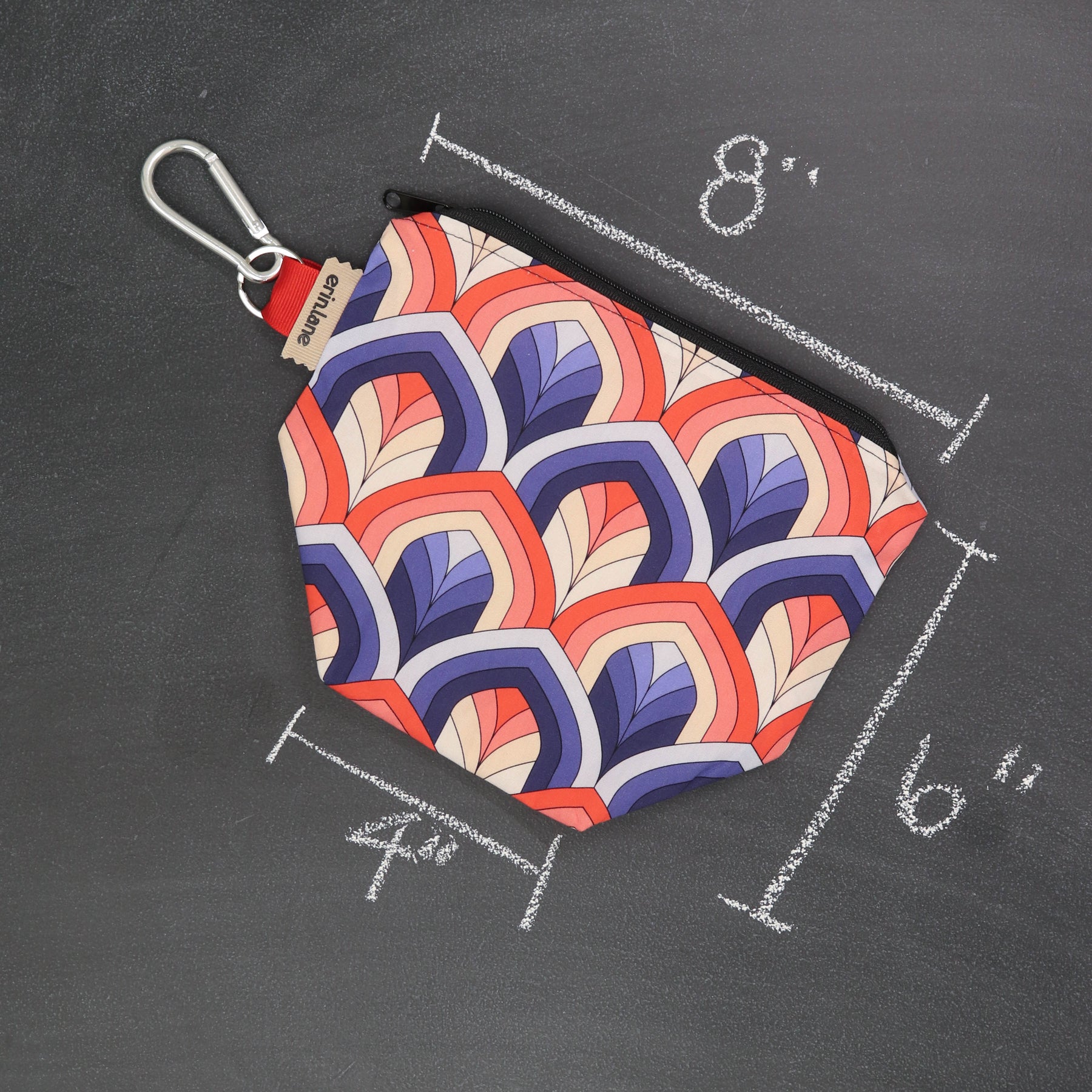 Sized at 8" x 6" x 4", it’s perfect for holding gaming dice, yarn notions, charging cords and blocks, travel toiletries, and any other small items that tend to disappear when you need them most. The #3 nylon coil zipper glides smoothly and won’t snag yarn, while a sturdy carabiner clip lets you hook it onto your backpack, project bag, or suitcase in seconds.