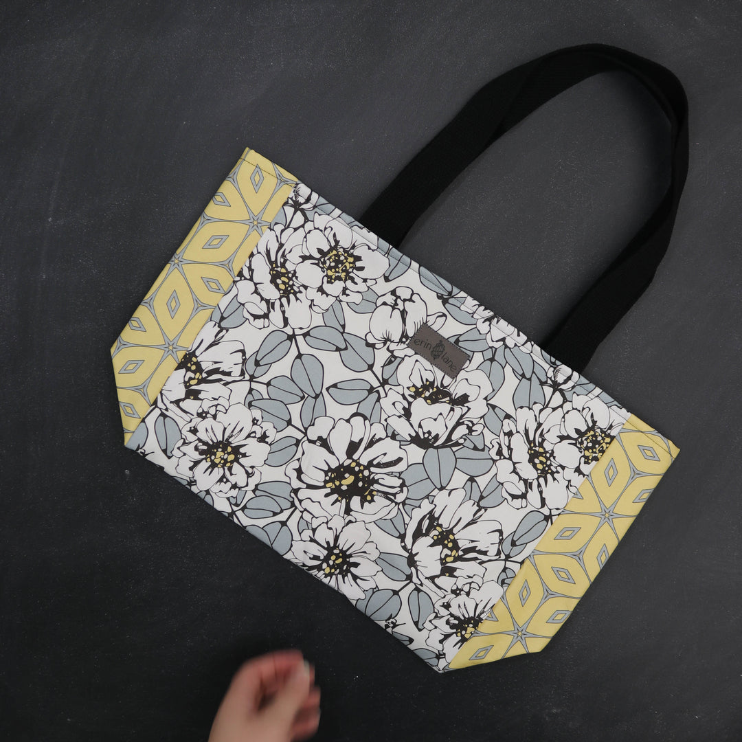 Say hello to the Everyday Tote – the perfect companion for your knitting and crocheting adventures! This delightful fabric tote measures approximately 14 x 14 inches, with a coordinating side panel creating a 5-inch gusseted bottom – allowing you to carry projects in style. Plus, its soft webbing straps help keep it comfortable on your shoulder (because no one wants sore arms from toting around crochet hooks and yarn!). And we couldn’t forget about its sweet little triangle detail at the bottom – be warned, that cute detailing may entice nearby bystanders to attempt to borrow it! But don’t worry – the light colored interior fabric makes it easy for you to spot whatever fabulous project or goodies are inside. Get ready for convenience and cuteness in one amazing package!