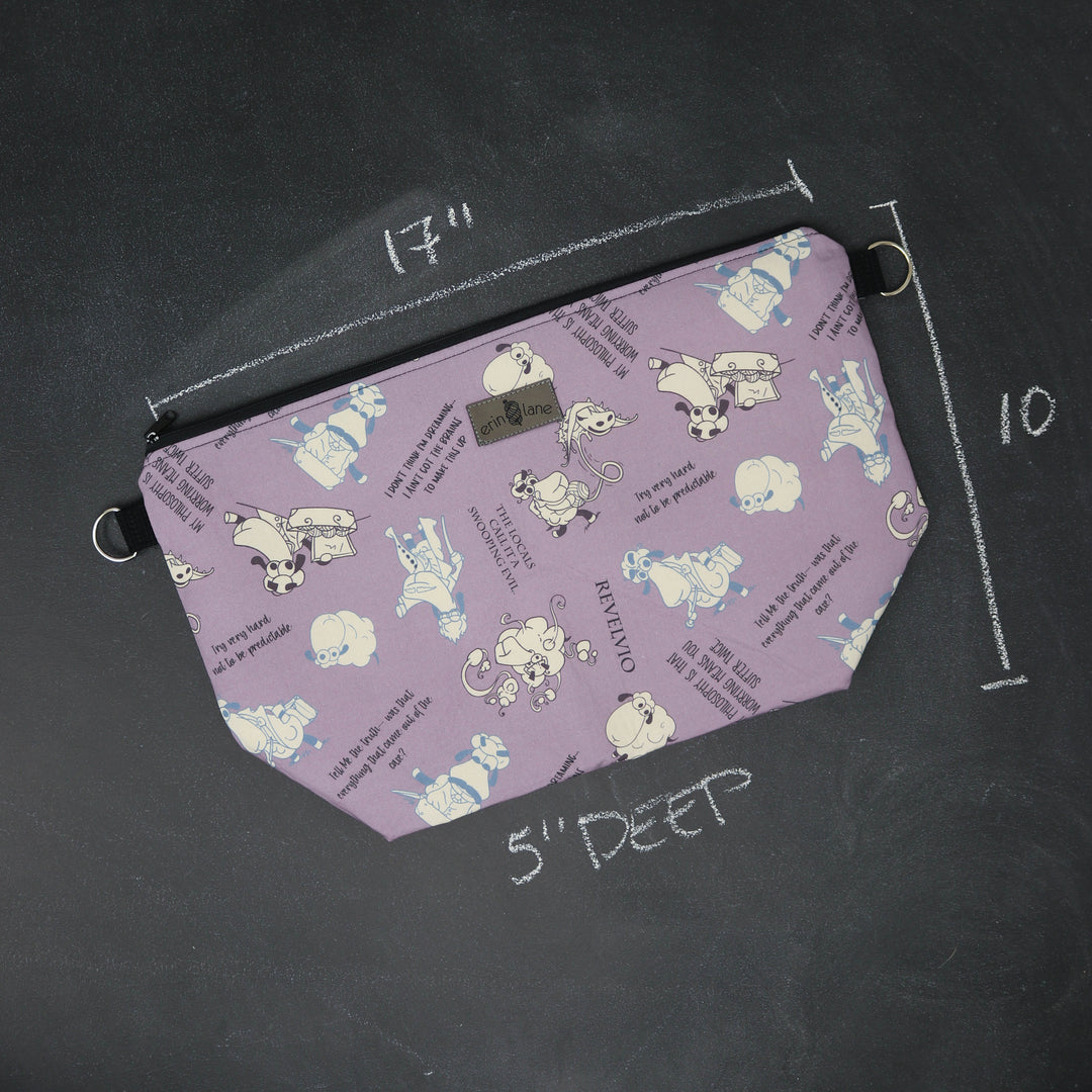 Large Zip Top Project Bag with Crossbody Strap in Fantastic Beasts Sheeple Quotes