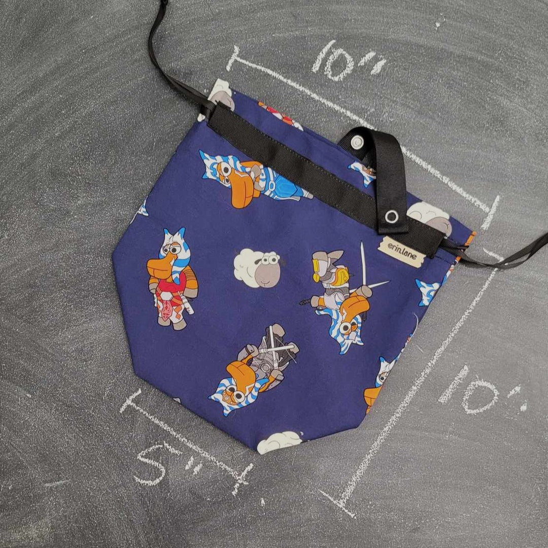Its flat, square base is just the right size to hold a 100g caked skein of yarn, while the self-locking drawstring keeps everything secure whether you're crafting, commuting, or heading out on a walk. The snap tab makes it easy to attach to a belt loop or bag strap, so your hands stay free for knitting, leash-holding, or grabbing a latte. Lightweight, portable, and fully lined, this little workhorse is always ready to go when you are.